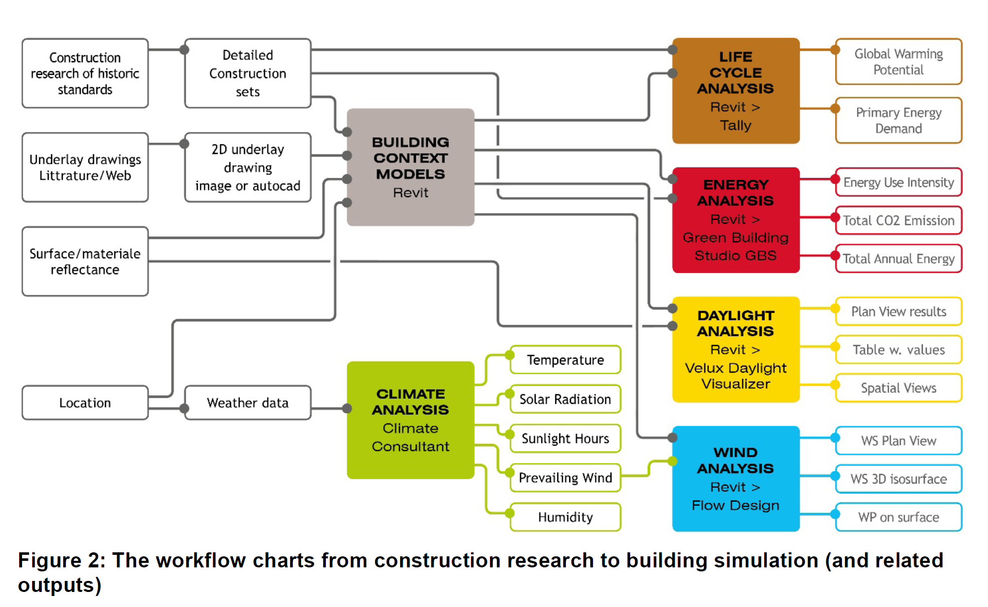University Architecture Course where students utilized BIM software to run computer simulations of climate conditions to compare sustainability features of functionalist and contemporary architecture. Students analyzed sustainability qualities including local climate criteria, wind, solar radiation and shadows, window-to-wall ratio, interior daylight and shadow, natural lighting and embodied energy. With Professor Emanuel Naboni and Daniel Nielsen.